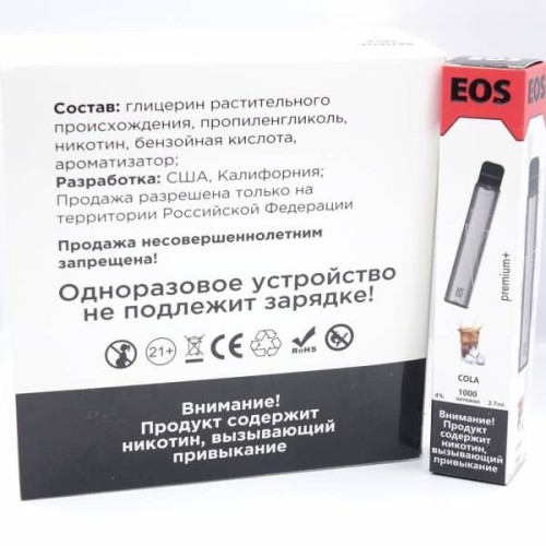 Ищите где купить КОЛА EOS PREMIUM+ 1000 затяжек 3,7 ml 4% nic Одноразовая электронная сигарета оригинал , Вы попали по адресу, у нас самые низкие цены, быстрая доставка по Москве и всей РФ, качество товара, цены, фото, описание
