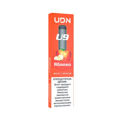 UDN U9 – компактная и удобная одноразовая сигарета на солевом никотине, отлично передающая вкус и рассчитанная на 350 затяжек, что равноценно примерно пачке сигарет. Объем вмещаемой жидкости составляет 1,5 мл, чего вполне должно хватить на 3-4 дня умеренного парения. Устройство не имеет лишних кнопок, активируется по затяжке, почти ничего не весит и прячется в ладони.