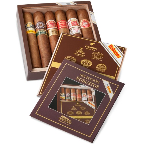 В наборе представлены шесть превосходных кубинских сигар классического формата Robusto. Самые знаменитые сигарные бренды собраны в одной коробке: Cohiba, Montecristo, Romeo y Julieta, Partagas, Hoyo de Monterrey, H.Upmann. Каждая сигара изготовлена из отборных цельных табачных листов и скручена вручную искусными кубинскими торседорами.