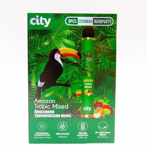 Ищите где купить АМАЗОНКА ТРОПИЧЕСКИЙ МИКС City 1600 затяжек Одноразовая электронная сигарета , Вы попали по адресу, у нас самые низкие цены, быстрая доставка по всей России, качество товара, цены, фото, описание