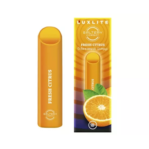 Luxlite Saltery Compact FRESH CITRUS – одноразовая электронная сигарета с солевым никотином. Содержание никотина – 5%. Сложный по составу цитрусовый холодок с выраженной нотой лайма. Этот вкус разработан эксклюзивно для линейки LUXLITE Saltery Compact. В перерывах между затяжками рекомендуется держать корпус в вертикальном положении.