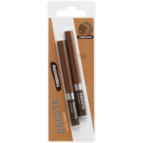 Сигариллы Дакота Капучино в удобном блистере по две штуки. Подойдут для повседневного курения, благодаря классическому ацетатному сладкому фильтру и мягкому аромату капучино. Табак в начинке имеет более крупную нарезку и более плотную набивку, по сравнению с конкурентами. Обёрнуты сигарильной бумагой из гомогенизированного табака.